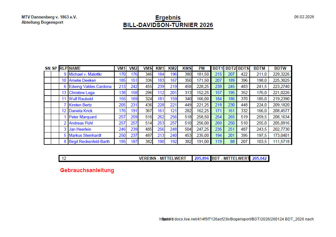 von 229,3 ist er Sieger des BDT 2026. 7 Tipper hatten Michael auf der