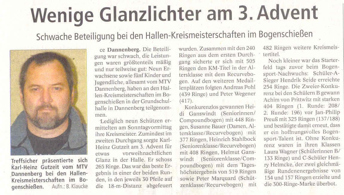 Die Ergebnisse werden auch als 1. Runde für das MTV-Vereinshallenchampionat