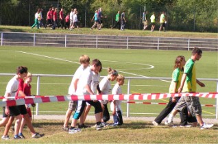 einem kurzen Einschießen startet die Staffel mit 8 Gruppen. Startläufer vom