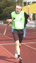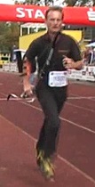 8 x 100 m Strafrunden und 23:31,7 min locker winkend als 5. ins Ziel. 21 sec zuvor ist Frank nach nur 3 Strafrunden völlig verausgabt ins Ziel gestürzt und 82 sec später hat auch Marcel seine Laufstrecke mit 10 Strafrunden locker absolviert. ![]() |