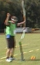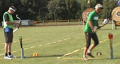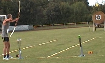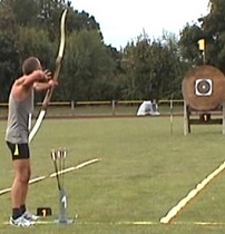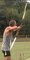 mit dem traditionellen Bogen. Vor 2 Jahren in Merkwitz noch Deutscher Meister mit dem Standardbogen, startet Peter Wegener von der MTV-Bogensportabteilung mit der Startnummer 1002 in diesem Jahr in der Gruppe ohne Visier. |