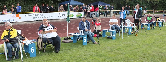 unterschiedlich großen Zielscheibenauflagen bestückt... ![]() die Scheibenrichter sind eingewiesen und vom leitenden Kampfrichter vergattert.. ![]() die Strafrundenzähler warten gespannt auf ihren Plätzen... ![]() und der Leiter der MTV-Leichtathletikabteilung Dieter Karl kann den 1. Lauf dieser 14. Deutschen Meisterschaft starten. ![]() ![]() Bei soviel Nachwuchs freut sich nicht nur der Ziehvater des Deutschen Bogenlaufens Stefan Lehmann. ![]() |