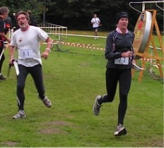Sohn Christoph in grün-gelb begleitet und lautstark im Ziel