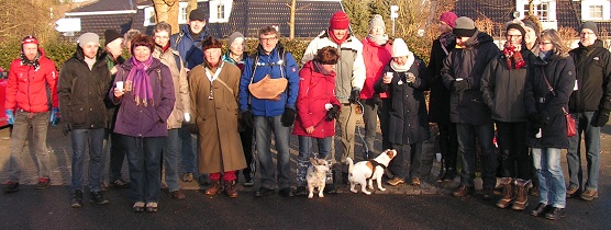 der Esso-Tankstelle 24 Wanderer und 2 Hunde. Damit ist