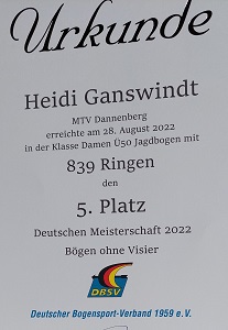 Bestleistung und NBSV-Rekord in der Klasse Damen ü60 Langbogen. Da der