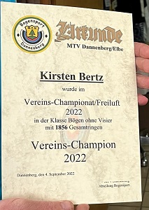 Abwesenheit wurde Kirsten Bertz für den Gewinn der Wertung mit Bögen ohne