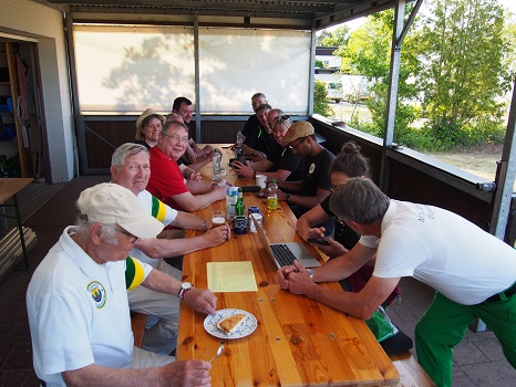 unserer neuen Vereinskleidung: grüne Hose, weißes Shirt, sieht doch gut