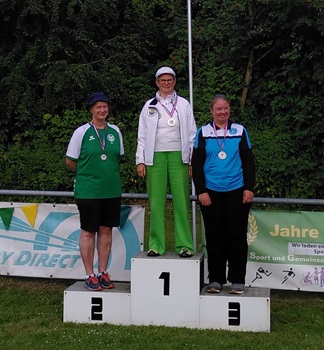 (Bild re: Siegerehrung Blankbogen Damen mit Siegerin Kirsten Bertz vom